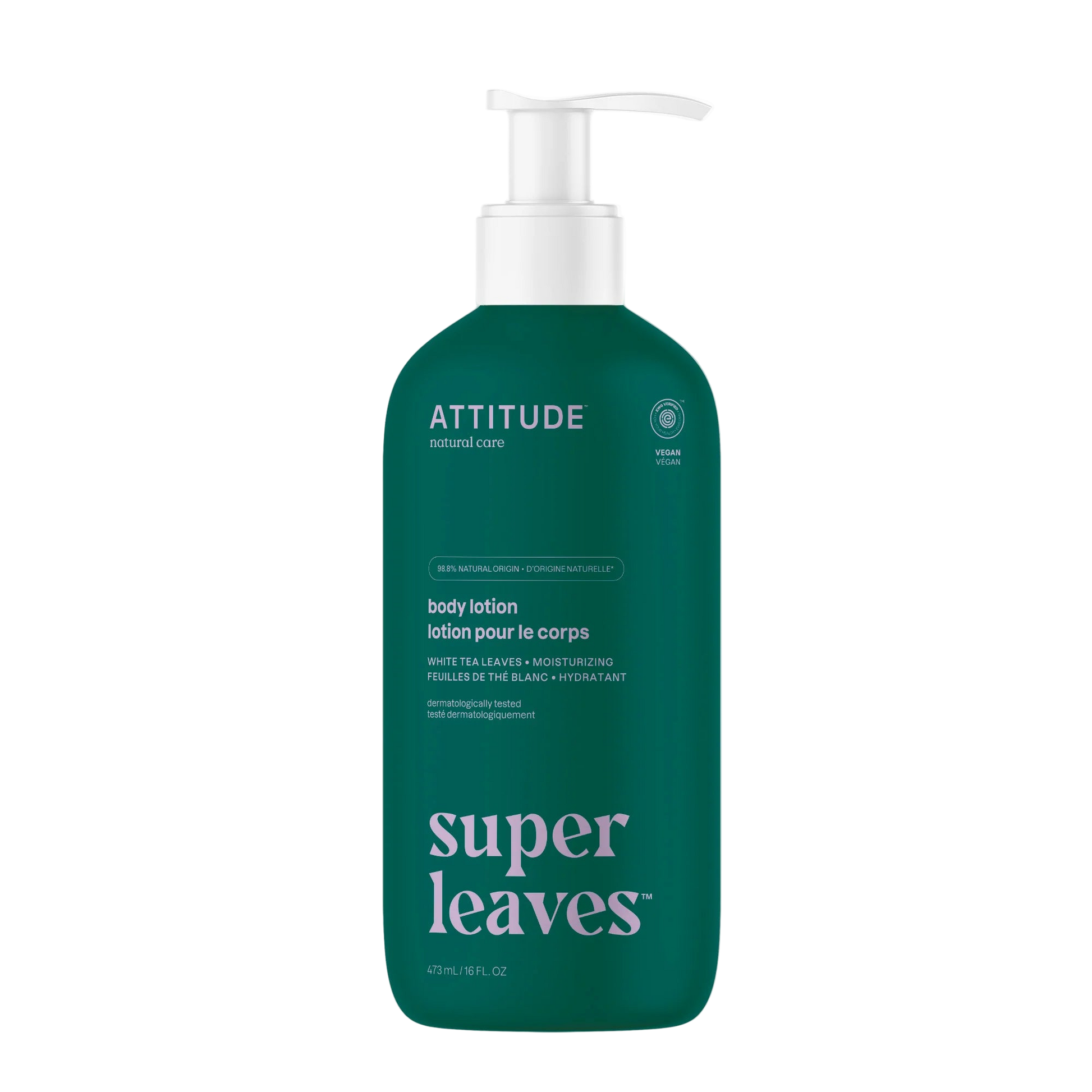 Formulée à partir de 98,8% d’ingrédients d’origine naturelle*, la lotion corporelle végane – Hydratante Feuilles de thé blanc d’ATTITUDE™ chouchoute votre peau.