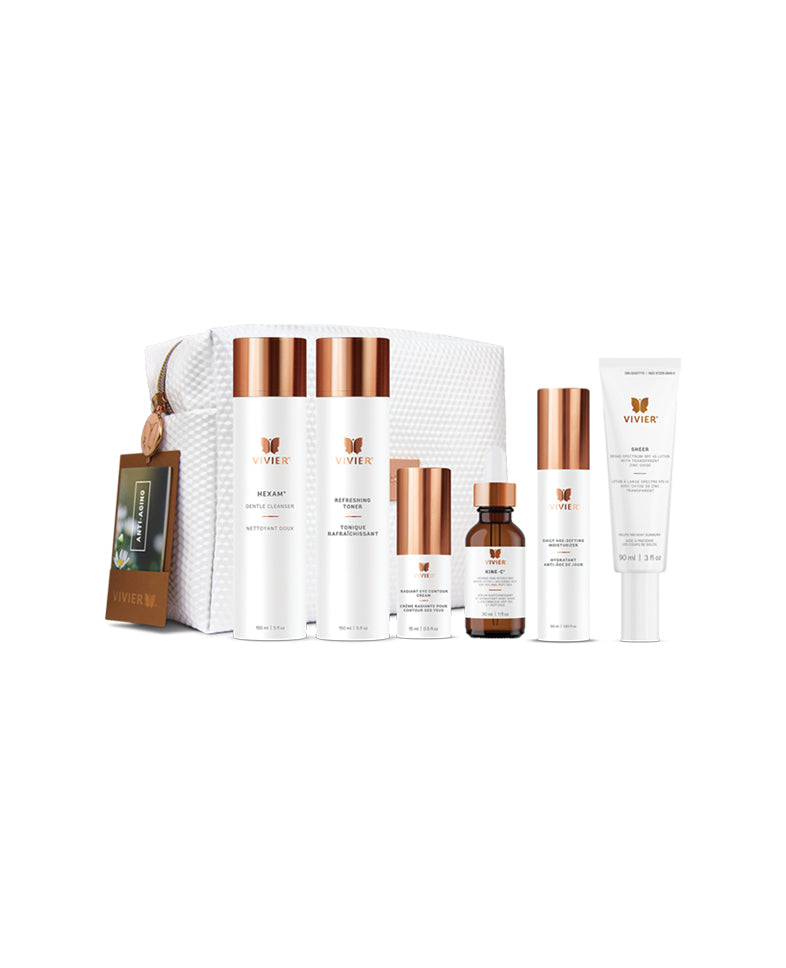 Ce programme anti-âge d’introduction comprend une routine complète de produits conçus pour aider à réduire les premiers signes du vieillissement, à protéger contre les dommages futurs et à préserver un teint rajeunit.